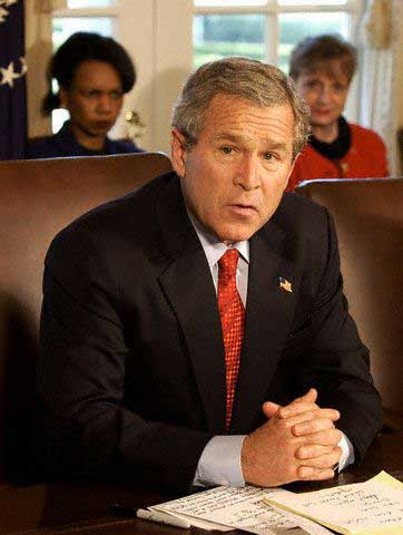 2004: The Brick Wall is Hit. Off with all that pesky hair! In with those feeble bangs again! And, look! It's Condi! Do you remember that day when Condi was famously photographed looking all pissed off next to the American flag? I used that picture to make many a swell Photoshop. What a fun day that was! Oh, sorry, I got distracted.